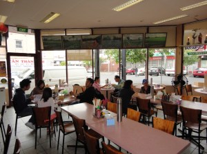 We’ve been in here heaps of times previously, but always for the non-pho soup noodles or a very excellent diced garlic beef with tomato rice. I’ve also had the banh xeo – a coconut/rice flour crêpe filled with prawns, pork and vegies – that went down well with Ms Baklover at Footscray Food Blog. I found it a bit dull and squishy.