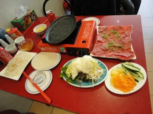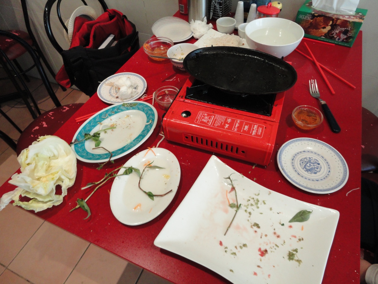 It’s a preposterous fun balancing the nack of getting the meat nicely charred but not overcooked while simultaneously soaking the rice paper in the hot water provided.