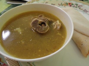 On an earlier visit on my ownsome, I’d had kikil – described as “lamb stew with special sauce sauted with onion and garlic”, it was actually a typically flavoursome broth, in which was submerged a meaty lamb bone. It was delicious, though $12 seemed a little pricey for a bowl of soup. It was beaut, however, to use injera with soup – the sponge-like texture, unsurprisingly, was just right for the job.