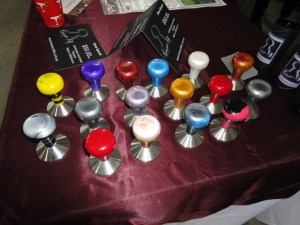 Several stallholders are spruiking far out custom-made coffee tampers: