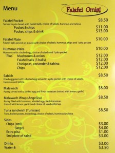 In no time, though, we are at Hawthorn Rd, securing a two-hour car park right opposite Falafel Omisi.