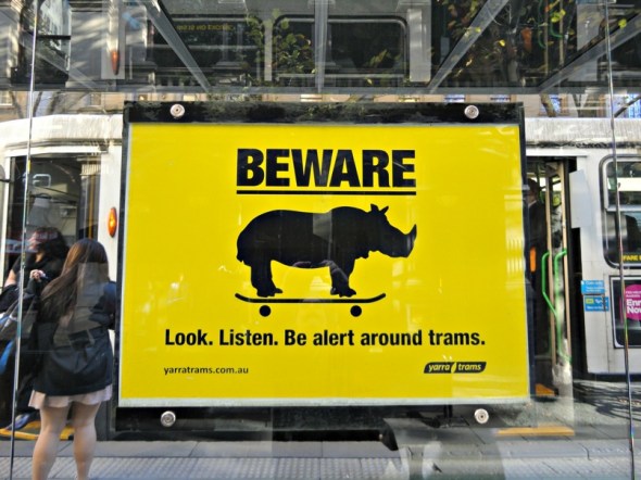1. Ha – on a trip through the CBD I noticed the skateboarding rhinos too. I had to laugh (and take a photo). Although considering the number of people who walk around listening to their iPods with little awareness of whats going on around them (why are there more of them in the CBD?), I think its a good sign.