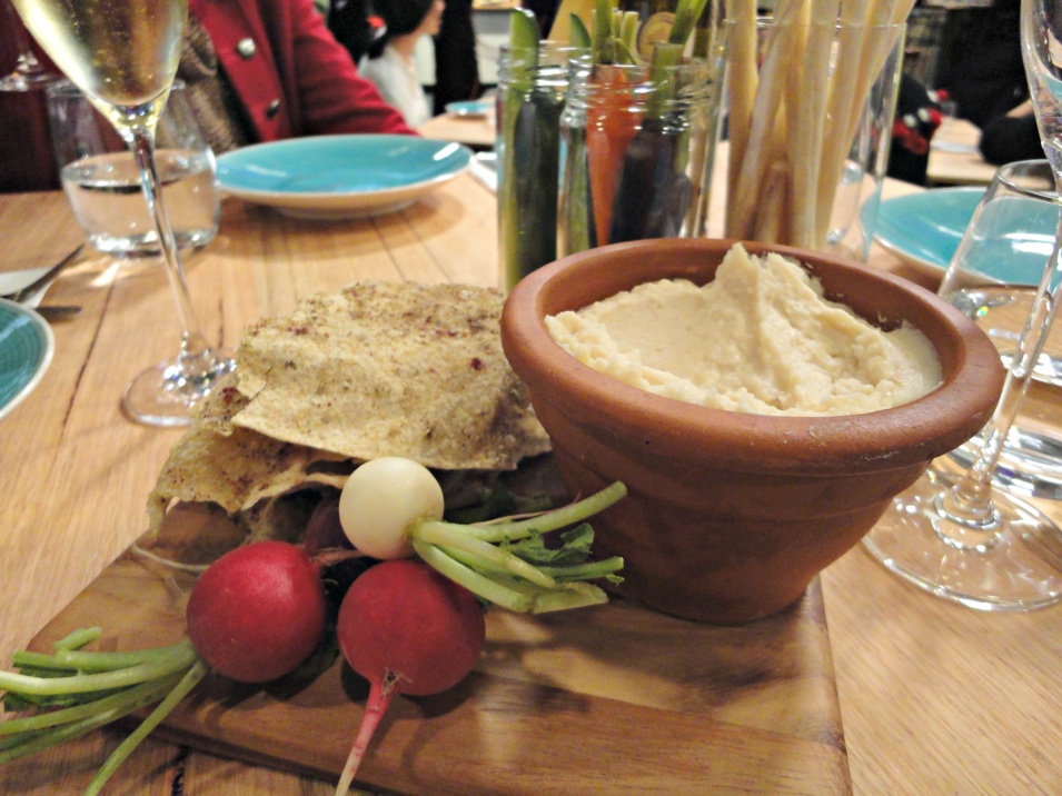 Looking like a very pale apricot taramsalata, it is actually a very fine, tasty and lemon-y white bean dip.