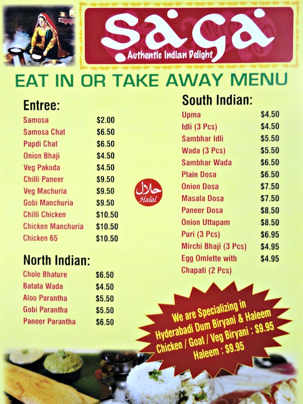 Saga replaces the short-lived Dosa N Biryani, at which I had but a single and barely OK thali meal.