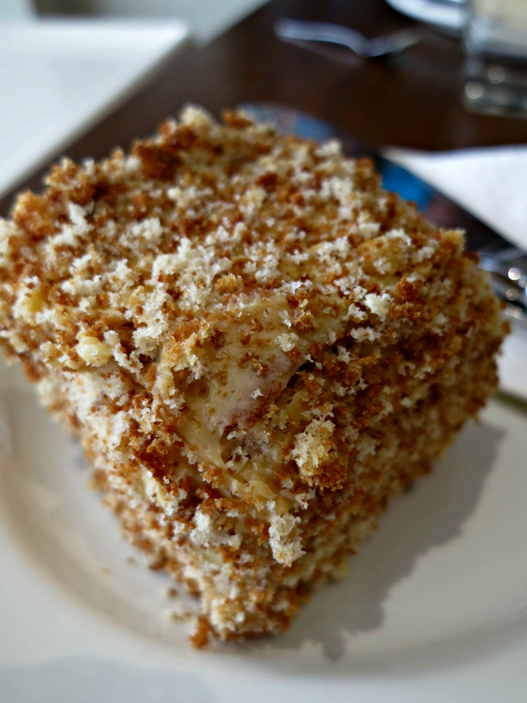 Not yet sated, we shared some delicious cakes, including a walnut sponge and a pastry filled with almond-flavoured custard.