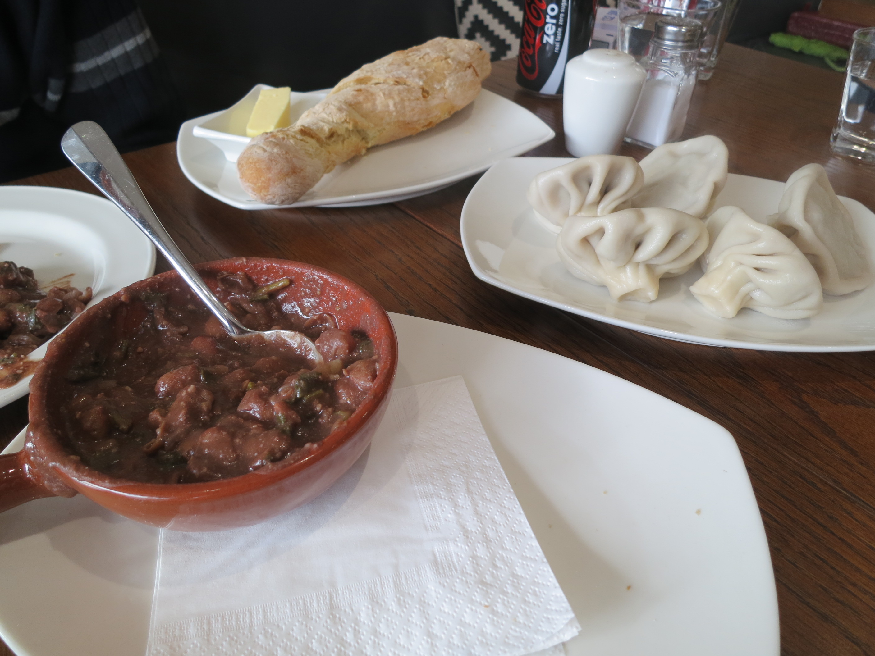 Our waitress gave us a quick tutorial on how to eat Georgian-style dumplings, which were quite large and shaped almost like mushrooms.