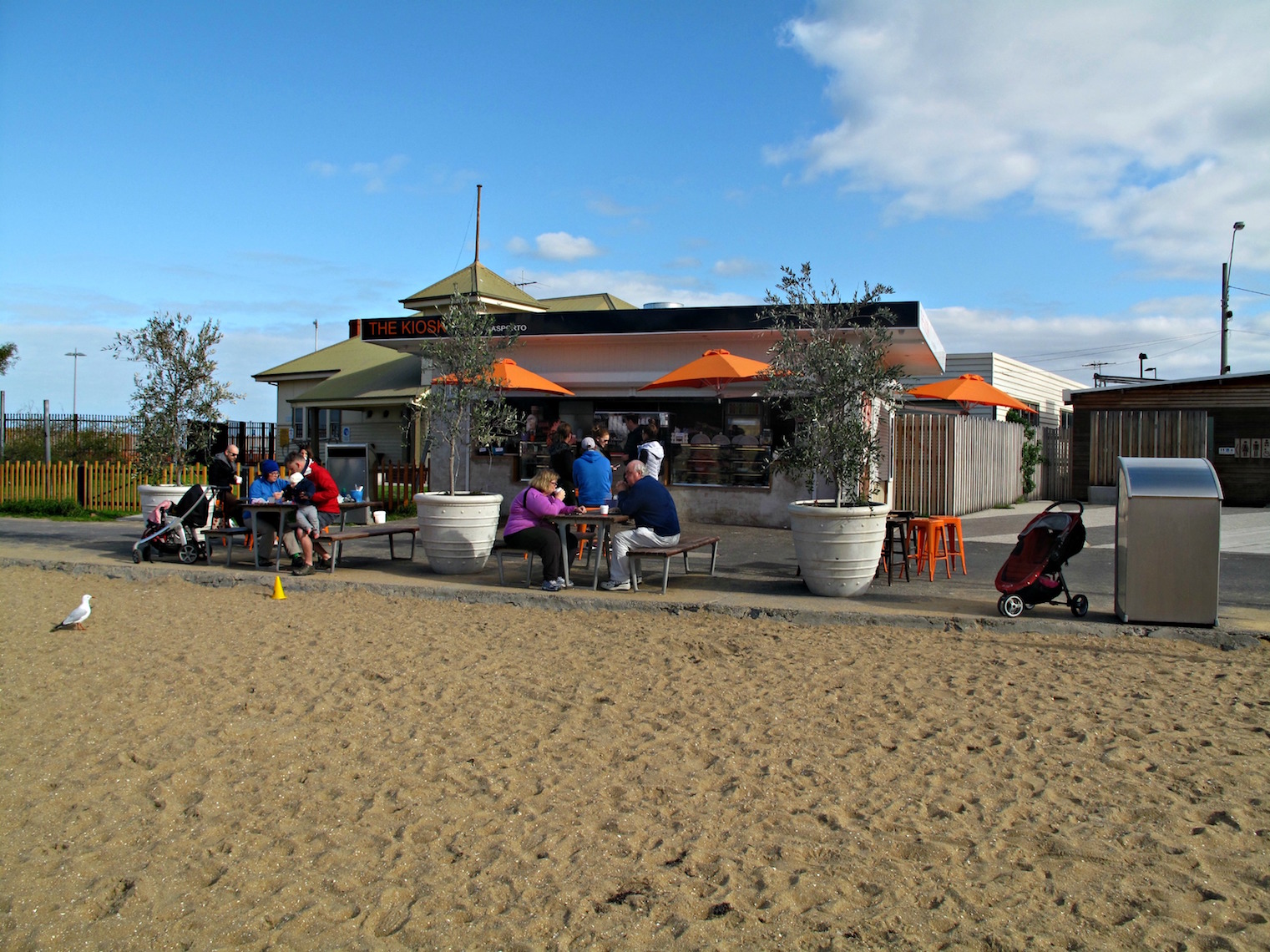 It’s a lovely scene – heaps of happy, chilled-out and rugged-up folks, almost as many dogs as seagulls and smiles all round.