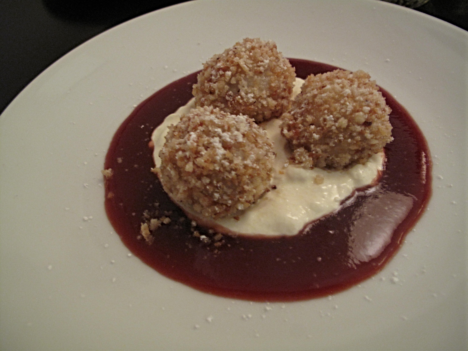 … knedle (plum dumplings with plum sauce and sour cream, $17) are every bit as perfect and sweet-with-some-sour as father and son were hoping for.