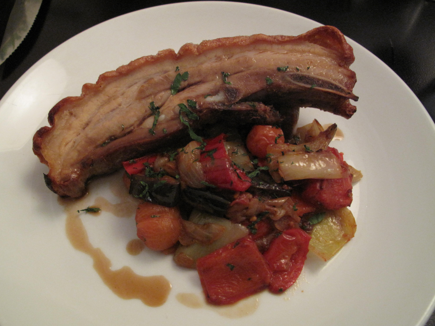 Bennie is very satisfied with his svinjska rebra iz paca sa satarašom ($44).