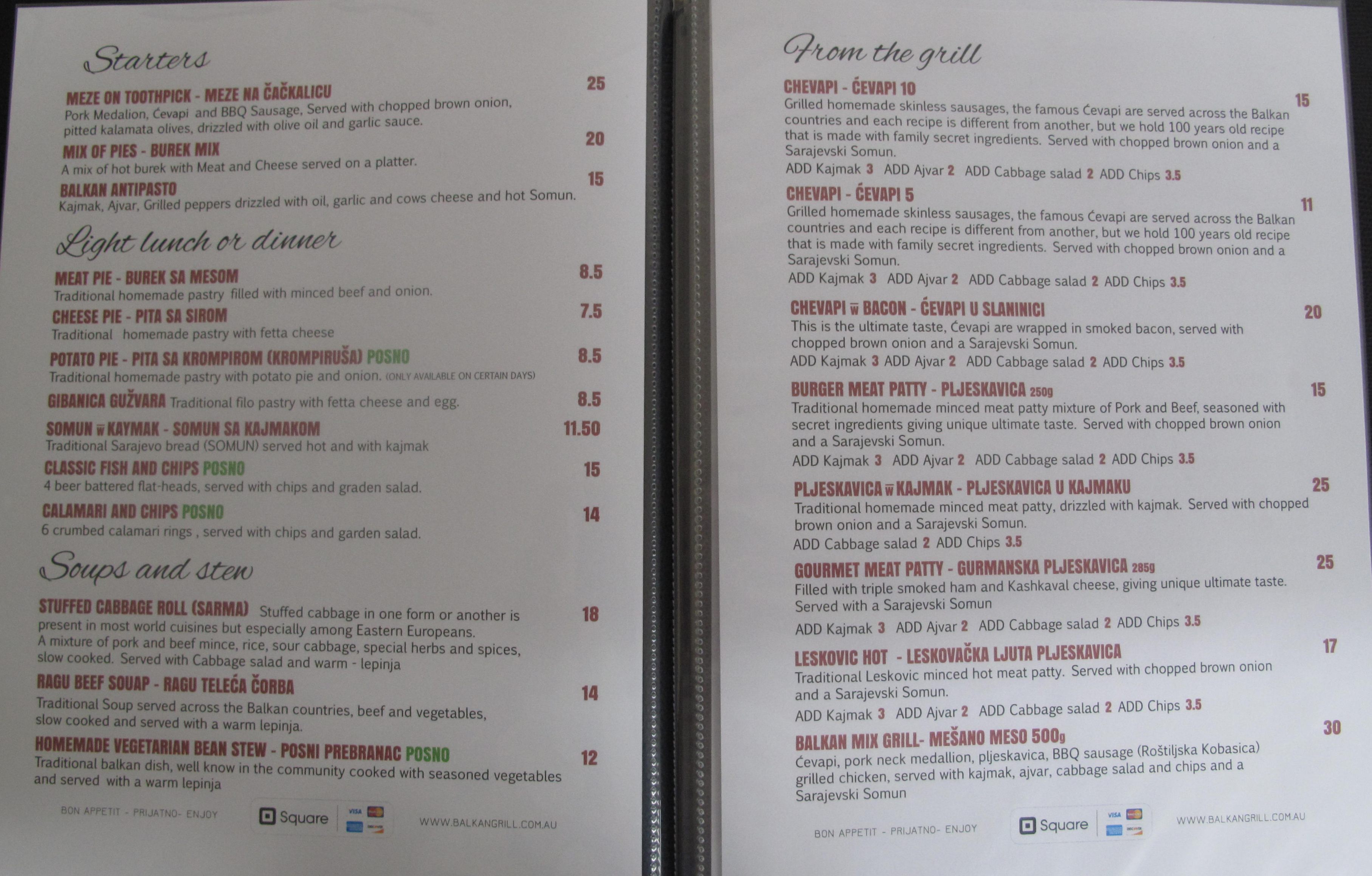 Balkan Grill, 57 St Albans Road, St Albans. Phone: 0438 887 017