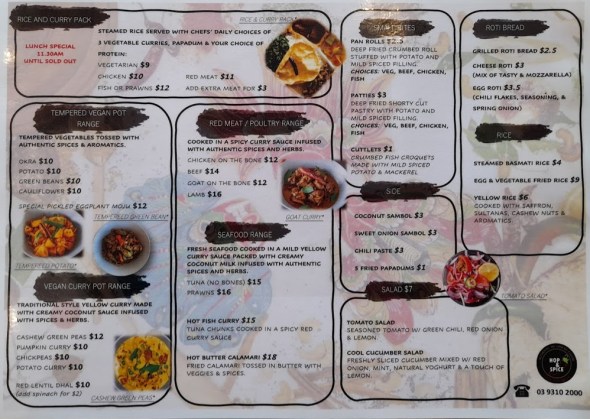 Hop N Spice, 284 Ballarat Road, Braybrook. Phone: 9310 2000