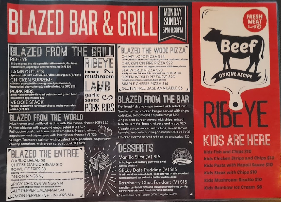 Blazed Bar & Grill, Sunshine Motor Inn, 608 Ballarat Road, Aredeer. Phone: 9363 1717