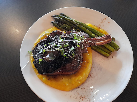The saffron mash and chargrilled mushroons and asparagus are excellent.