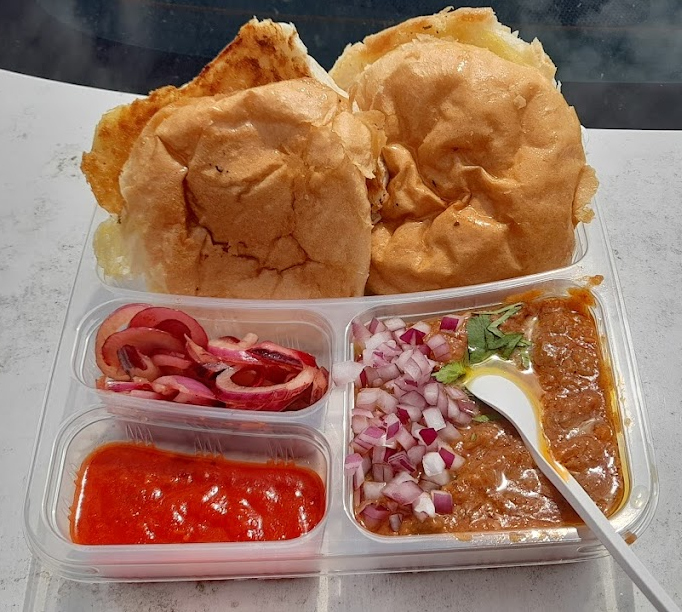 Pav bhaji can be eaten as a kind-of burger, with the thick veg curry gravy slathered between the soft buns/pav.