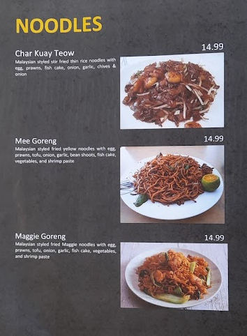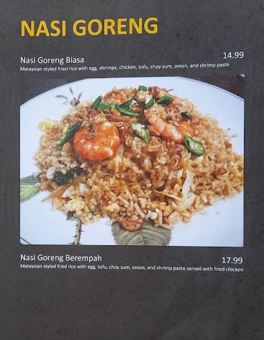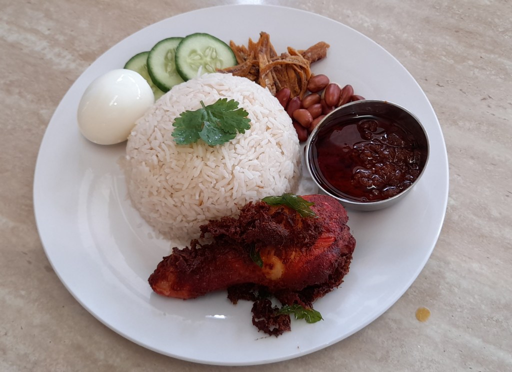 Bennie’s nasi lemak with fried chicken ($14) has all the necessary bits and pieces and hits the spot nicely.
