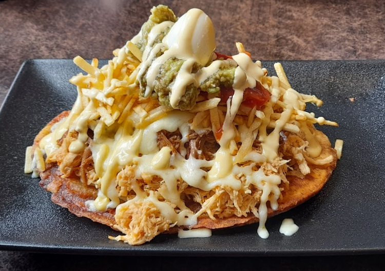 The array of toppings is sullied, just a little bit, by the plantain base being really tough and hard to cut.