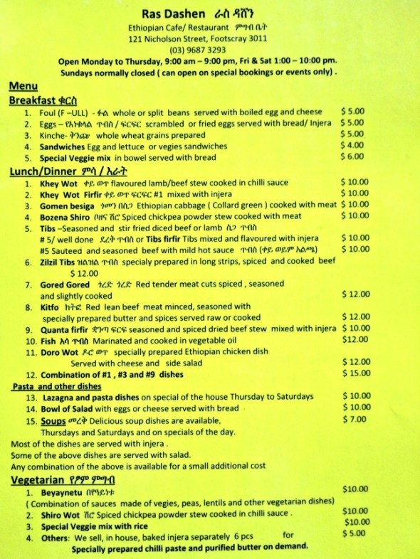 Betty’s Ethiopian Restaurant & Cafe, 819 Ballarat Road, Deer Park. Phone: 9363 0857
