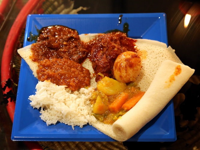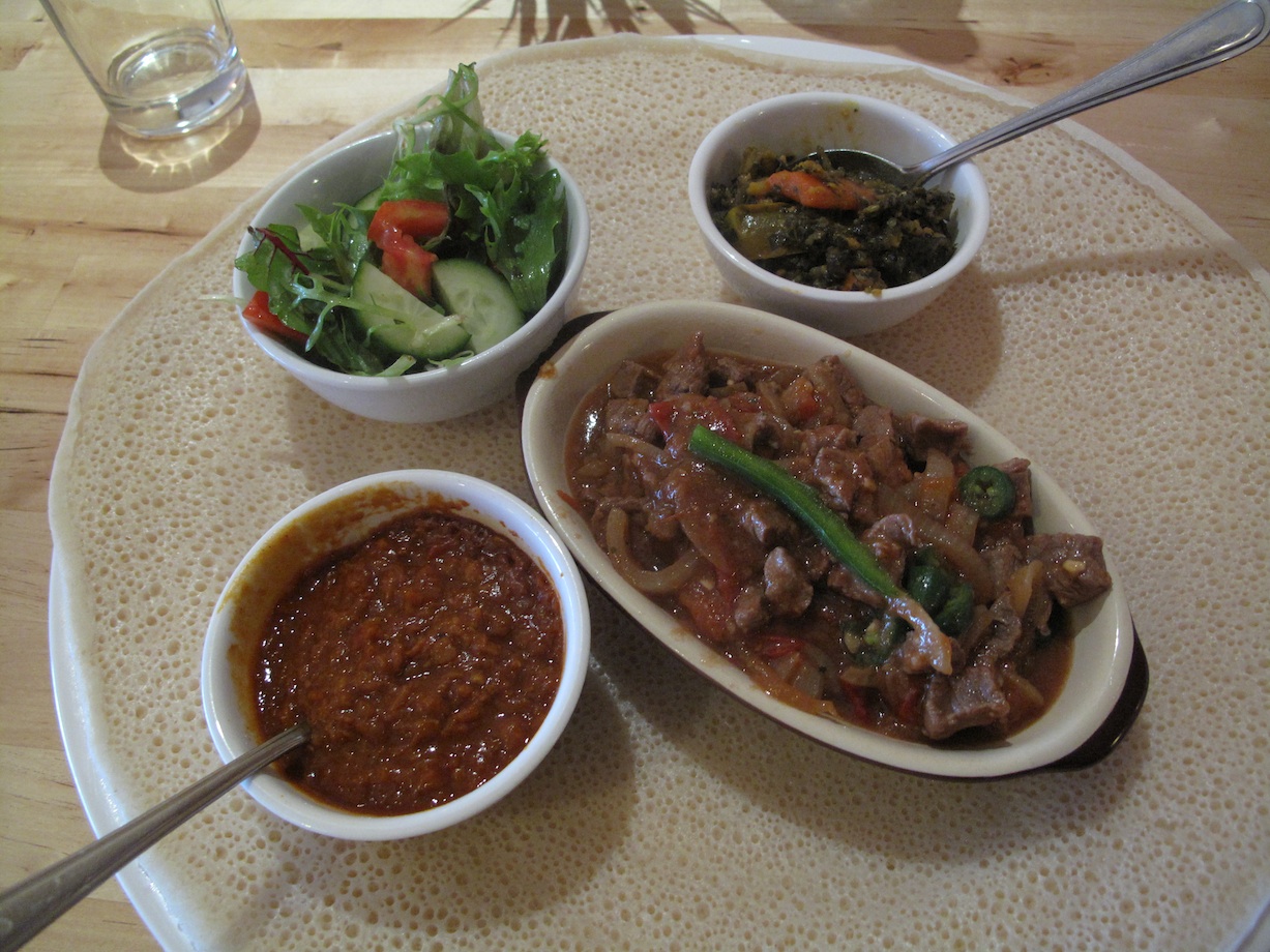 It has lentils three ways, the familiar mix of spud and beetroot, and cabbage/carrotconcoctions that display a bit more crunch and texture than is often the cooked-down case in the other Ethiopian places.