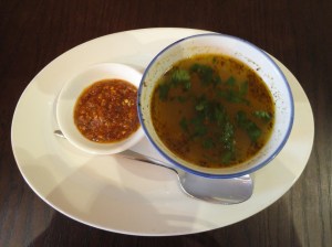 The accompanying “spicy soya Bollywood masala chutney” and fruit chutney are fine, serving as a flavour boost for the mostly tasteless roll itself.