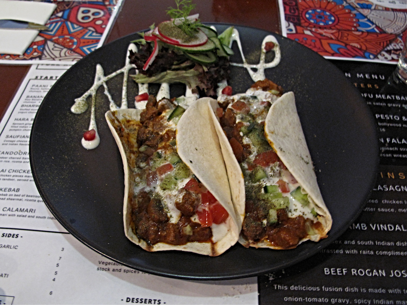 Lamb vindaloo tacos ($19) are simply that and good in a no-fuss way.