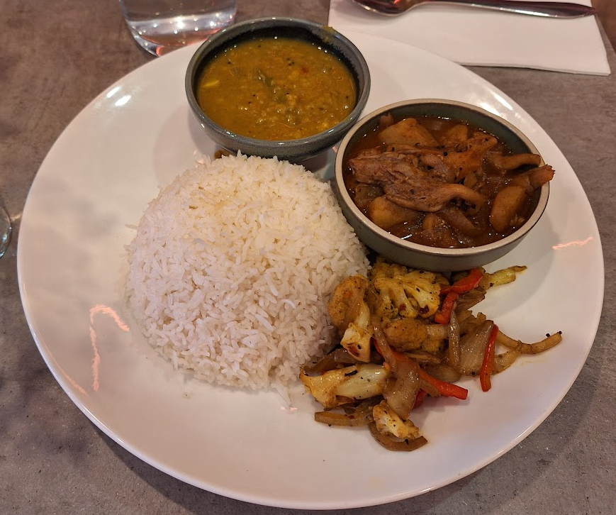 Half the menu here is dedicated to familiar Indian dare such as paani puri and beef madras.