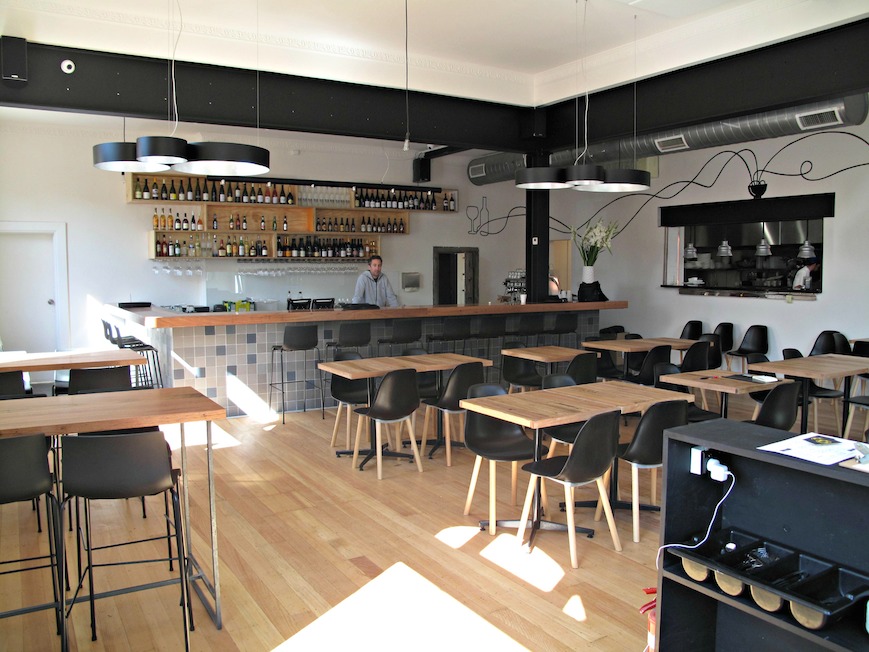 This has a nice vibe going, with its very high ceiling, exposed bricks and comfortable, elevated booths.