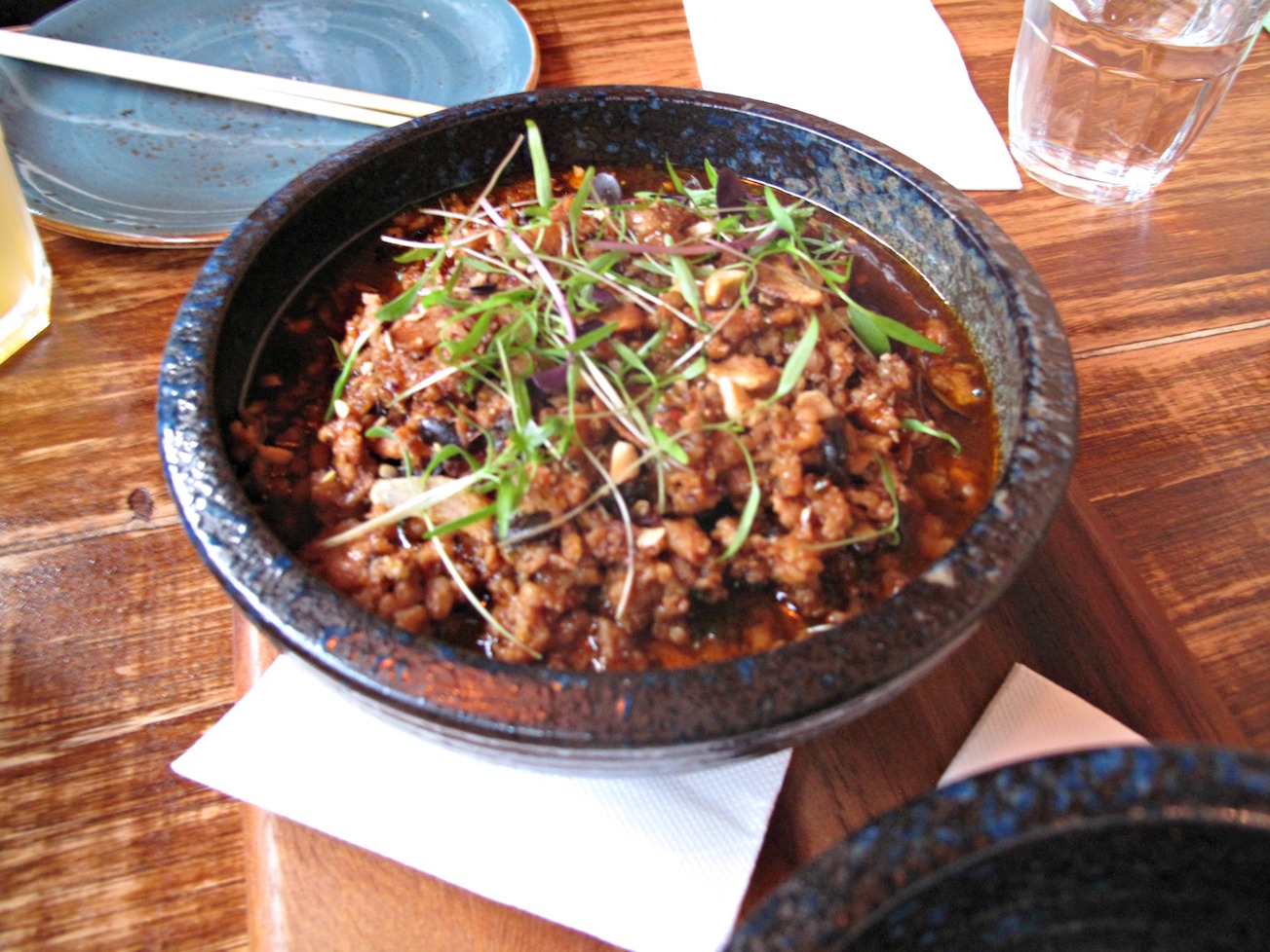 Yunan-style lamb ribs, sesame seeds, sweet and sour soy lacquer are lovely, though fatty – as is to be expected.