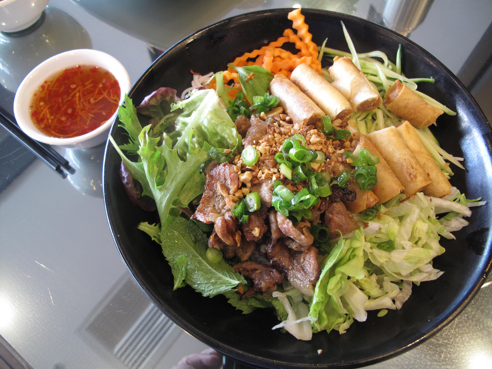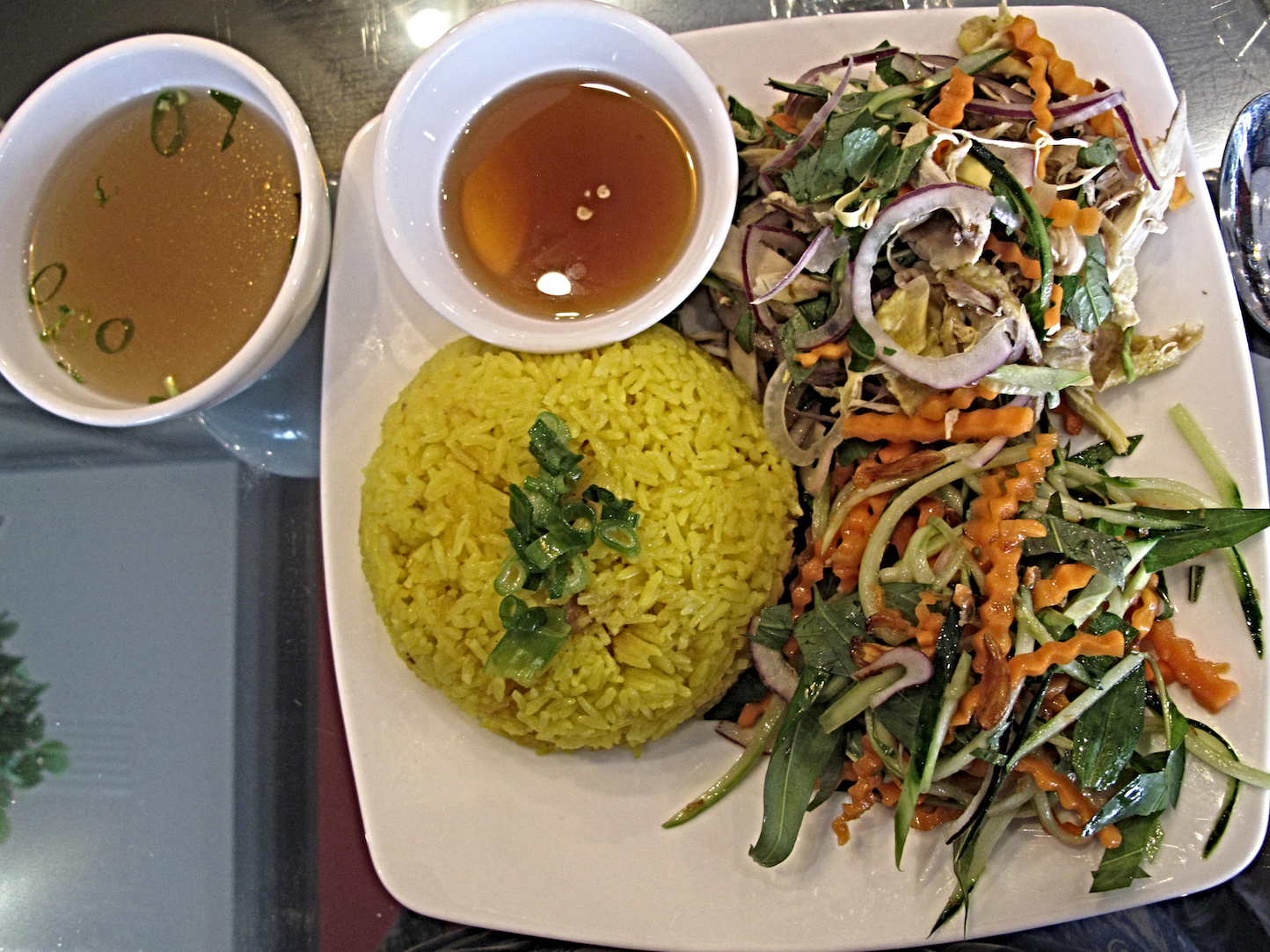 … the “Korean rice bowl bibimbab” ($18) of braised semi-dry mushrooms, pork, carrot, daikon and more enjoy their meals.