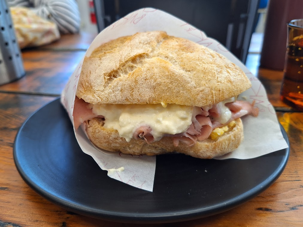 Multiple slices of green olive mortadella. It’s my favourite sandwich meat, so no surprise I love this generosity.