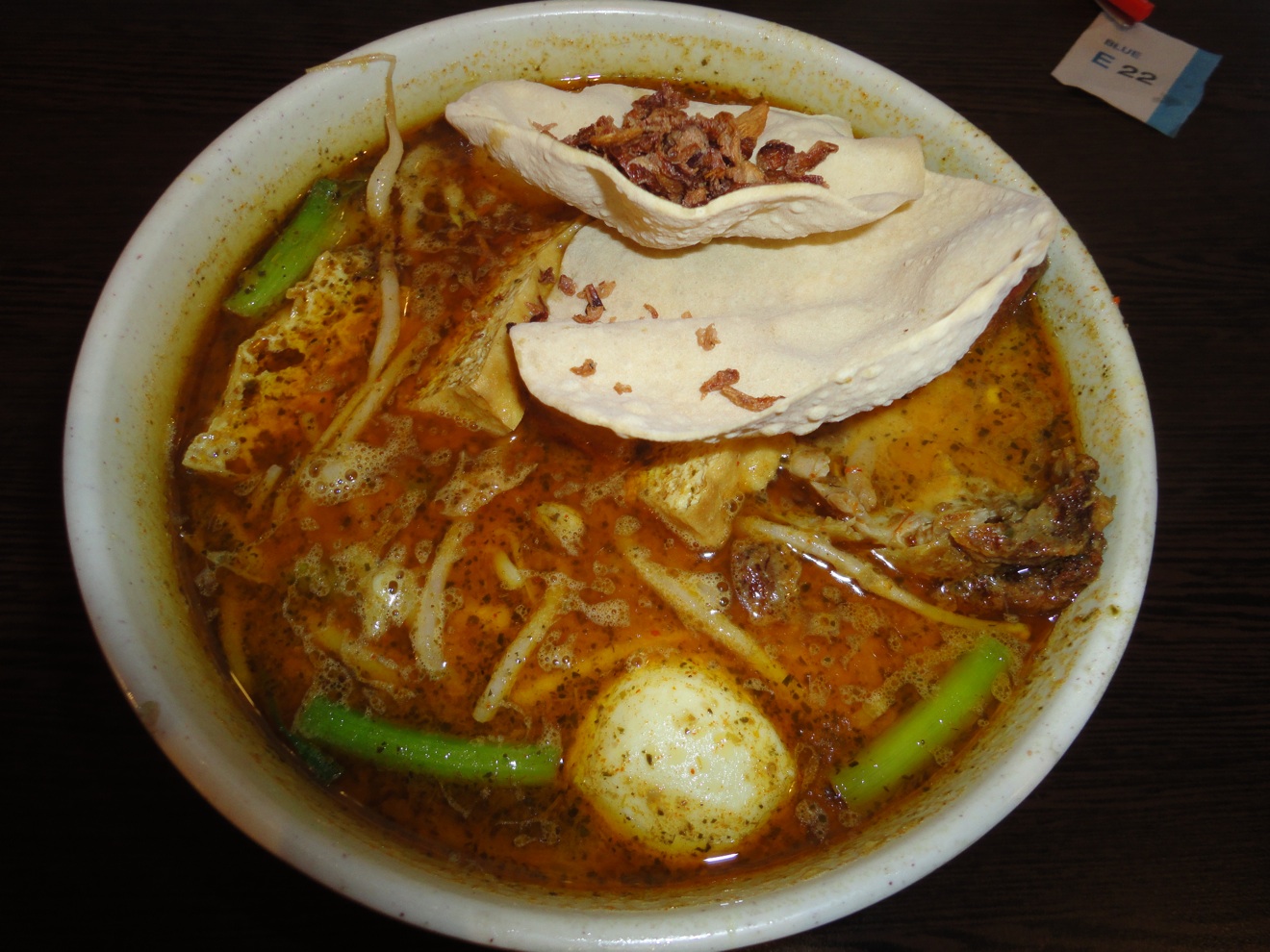 One of fellow diners is eating a laksa that is a lurid yellow instead of the golden brown you’re more likely to find in Flemington.