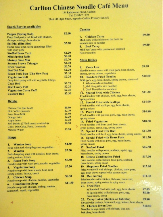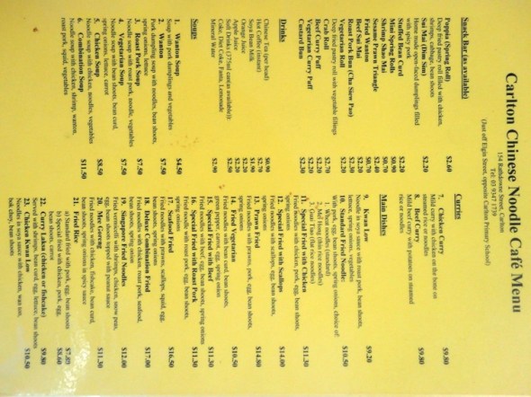 Carlton Chinese Noodle Cafe, 157 Rathdowne St, Carlton. Phone: 9347 1739