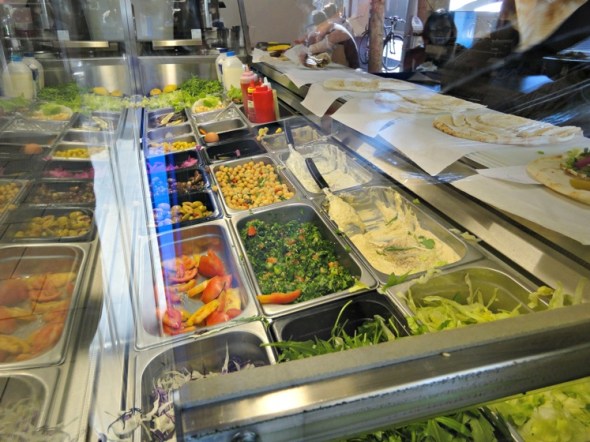 … Texas-style brisket, fire-roasted red peppers, pit-braised pulled lamb, BBQ street corn, with two kinds of pickles besides!