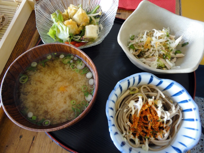Trio of salads and miso soup at Ajitoya in Seddon.