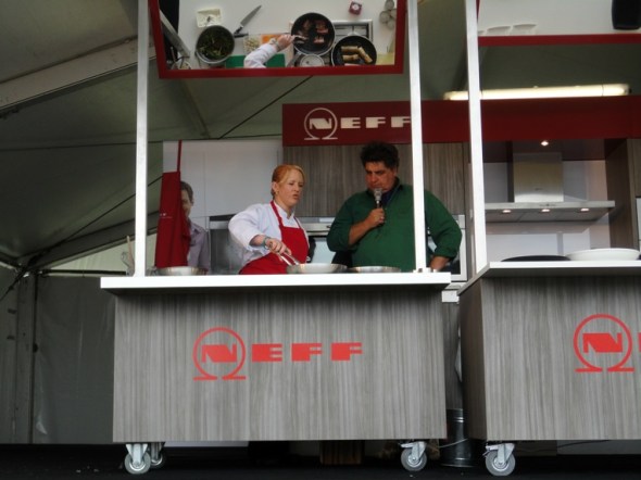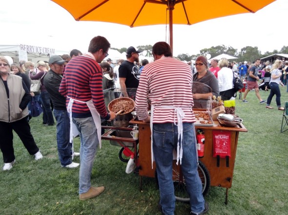 At the other end of the festival set-up, a big crowd looks on as Matt Preston presides over the Ultimate Chef Challenge – basically cooking displays featuring locals chefs such as Leonie Mills from Jack & Jill Restaurant.