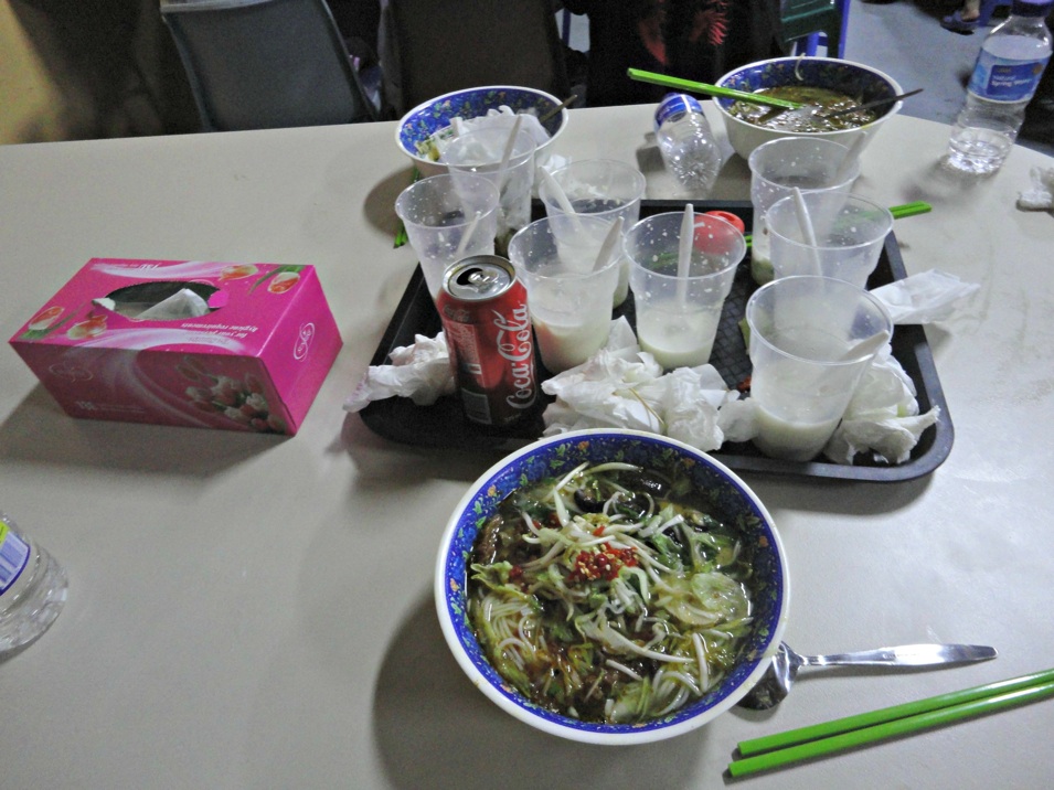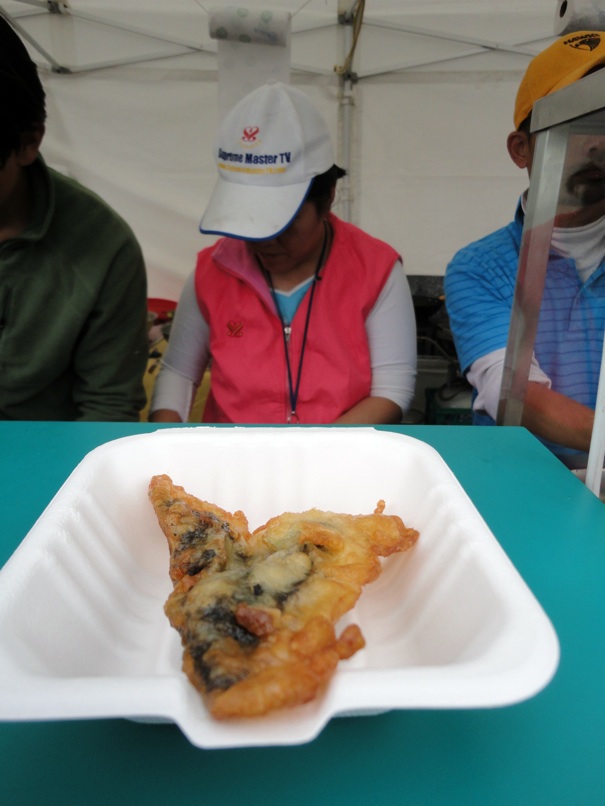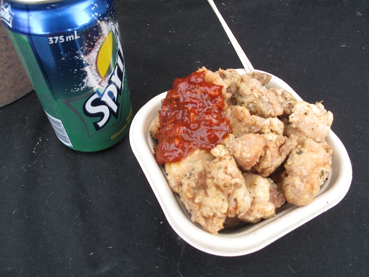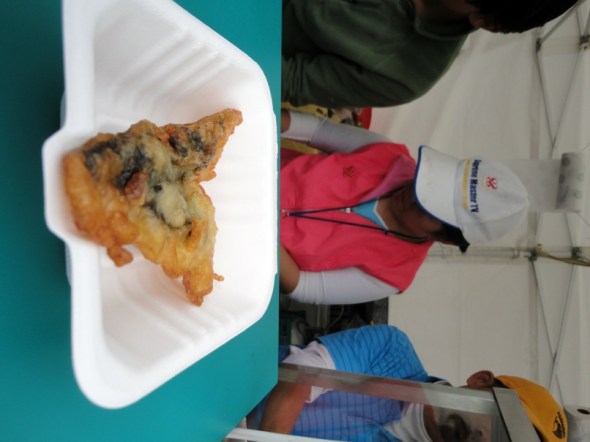 They’re doing good business, too, with what appears to be simple noodles and the like, but as I’m full of rabbit and dodgy BBQ, I make do with a simple piece of tempura seaweed.