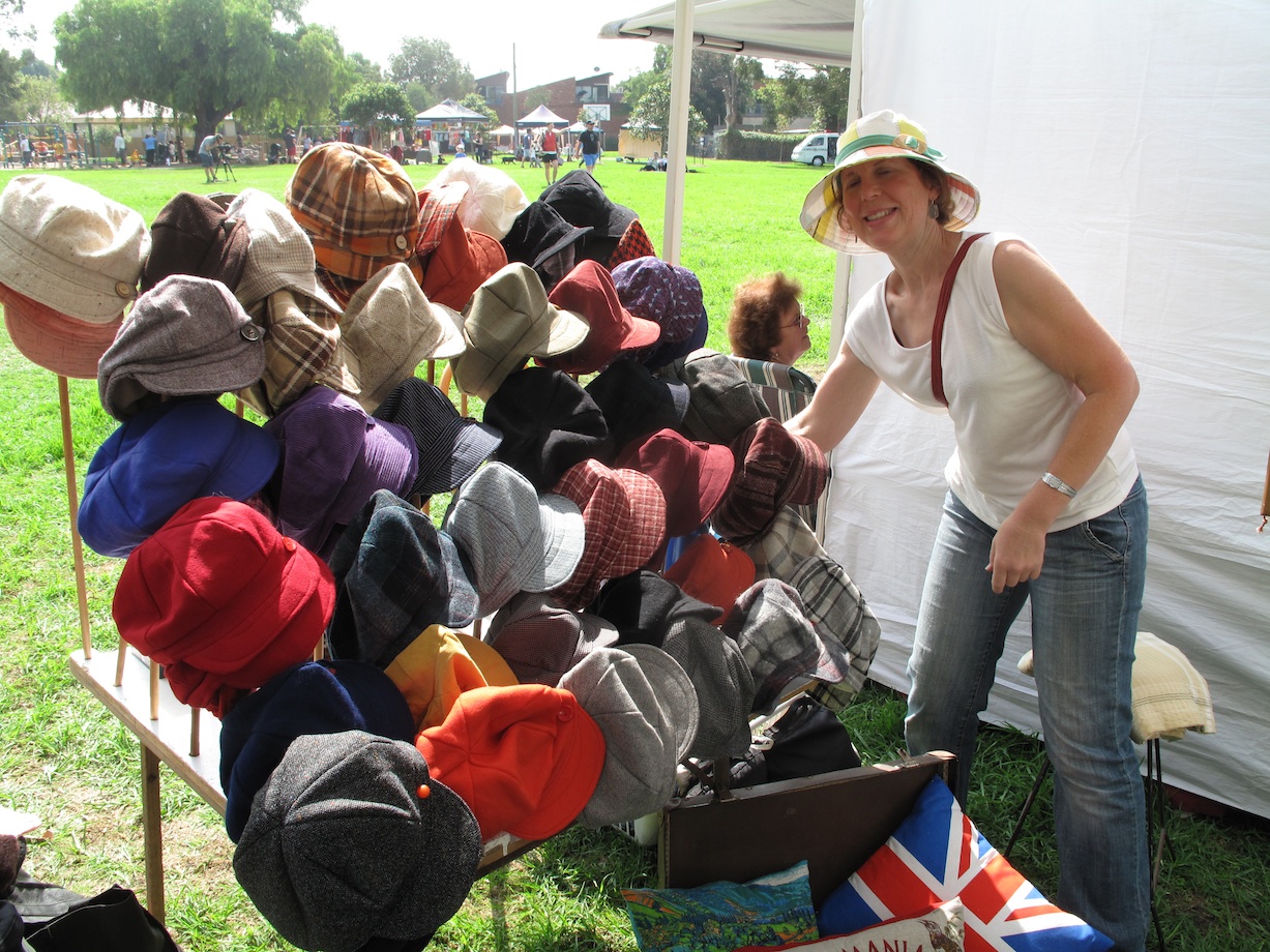 I especially like talking to Karen, who makes all her hats and caps from recycled materials.