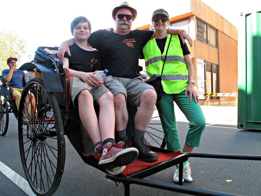 Last year, I volunteered for a couple of shifts pulling a rickshaws, Bennie joining me for one of them.