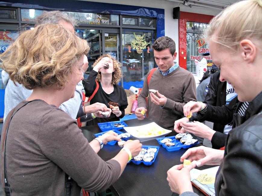I soon discover that in each group of eight, there are some who oyster and some who don’t.