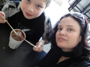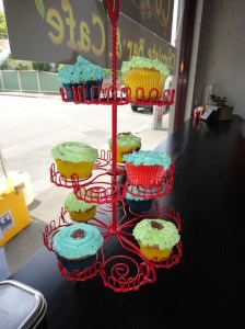 We scope out the food offerings before making our choices for what will amount to an early dinner.