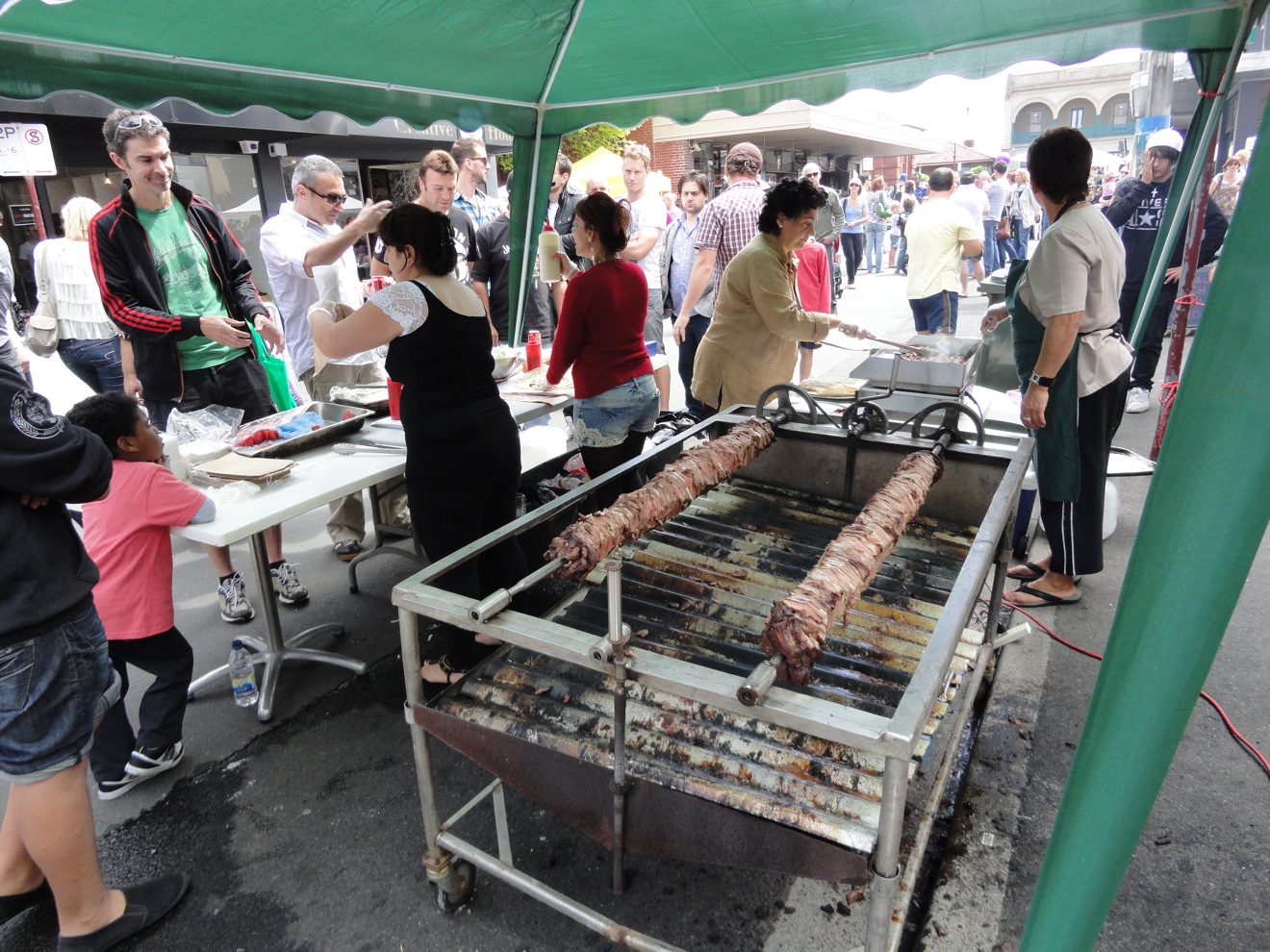 It’s a simple affair – a row of tents selling (mostly) food, a central marquee with tables packed families and more than a few blokes getting seriously into the festival spirit, a stage from whence Croatian-style rock pumps at a fairly hefty volume, and the centre’s bar/restaurant also doing grand business. It’s hot and noisy.