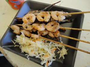 After a while and a bit of friendly banter with the grill boys, we are presented with yet another plate of their lusty seafood, free of charge.