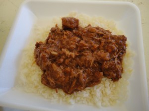 Finally, almost sated, we share a small serving of goulas ($5), its sweet and rich gravy packed with tender meat on a bed of plump rice.
