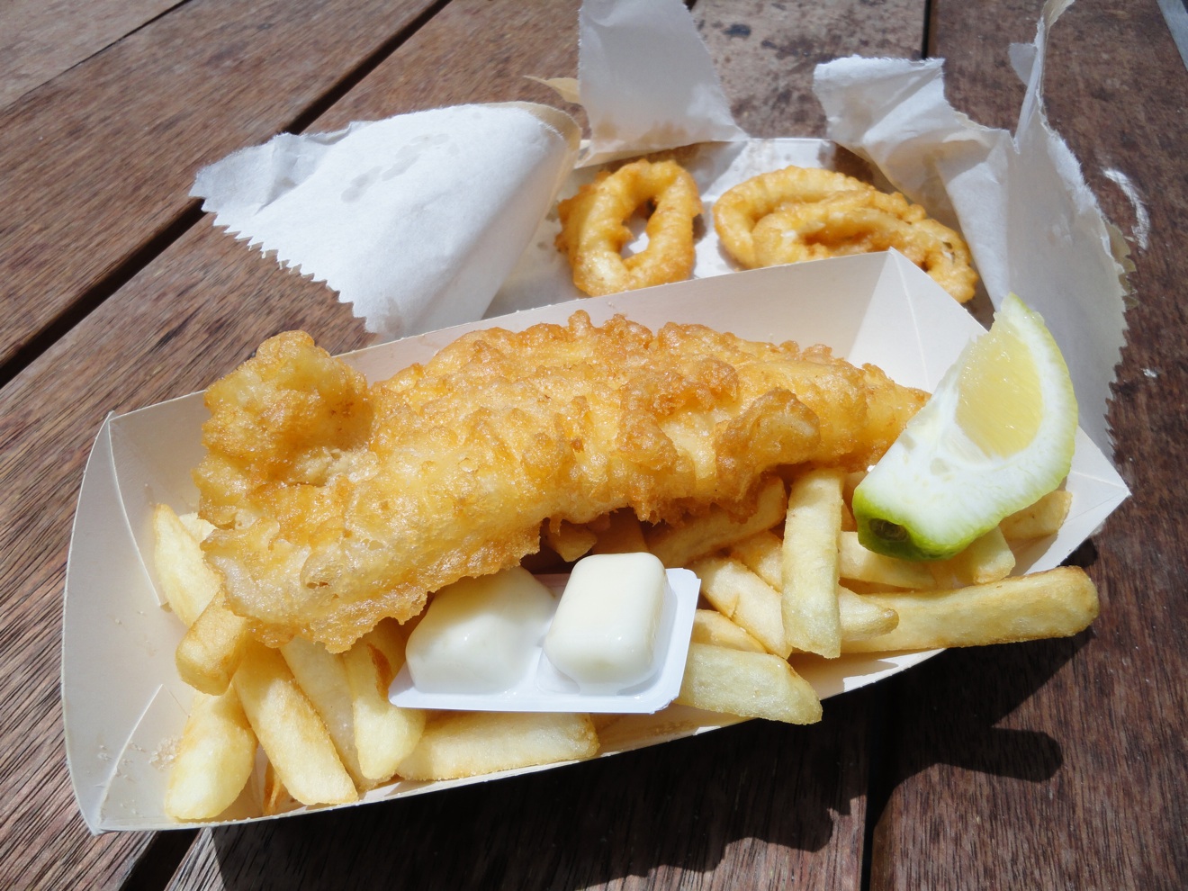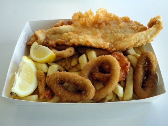 Bennie’s large fish and chips ($15) features two handsome pieces of john dory. I don’t try it, but gosh it looks magnificent.
