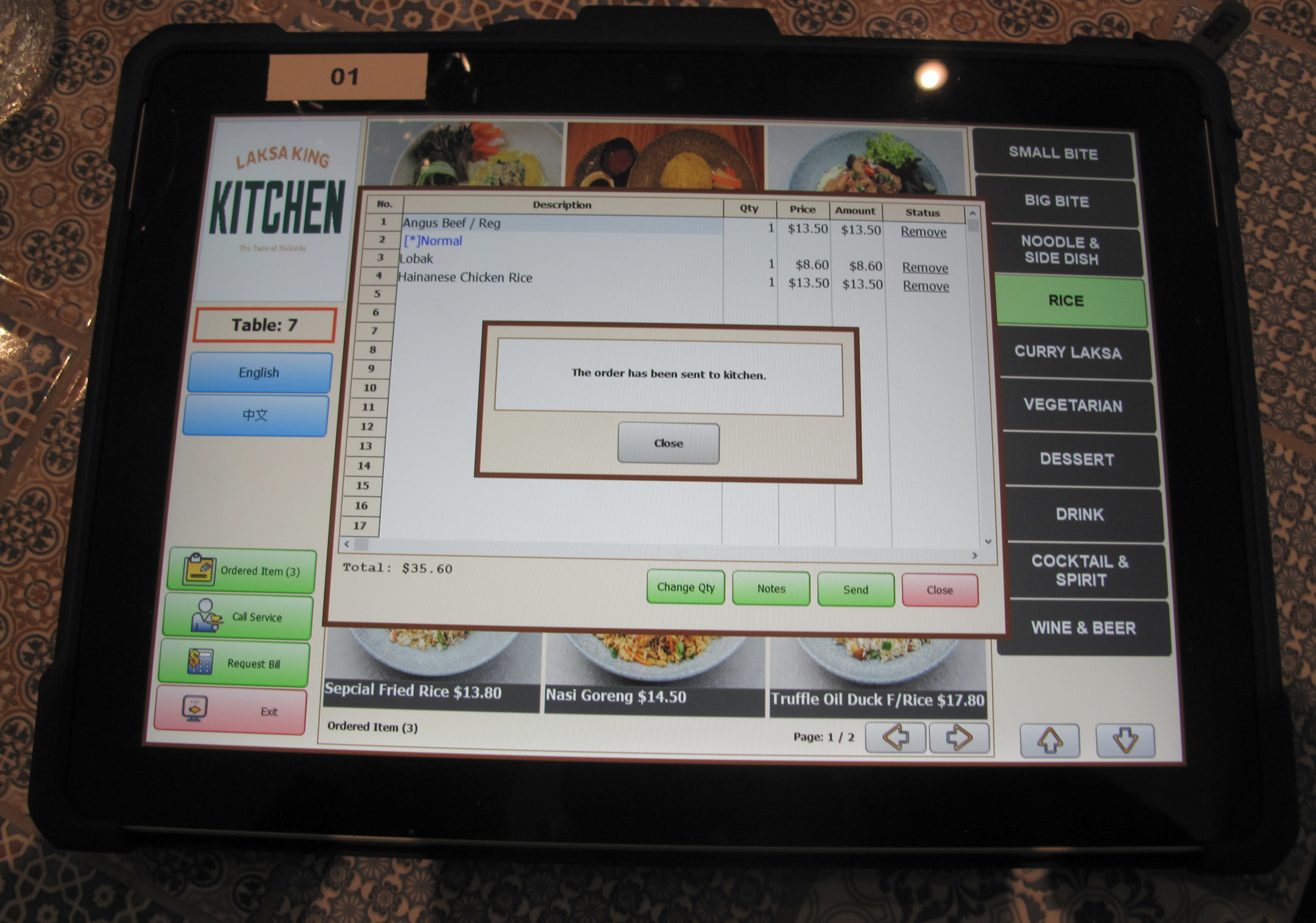 Selections can be ascertained using the printed menu or on the laptop at each table, but the actual ordering is done via the latter.