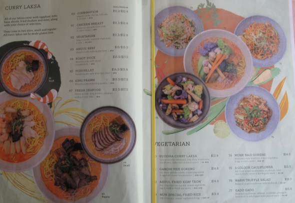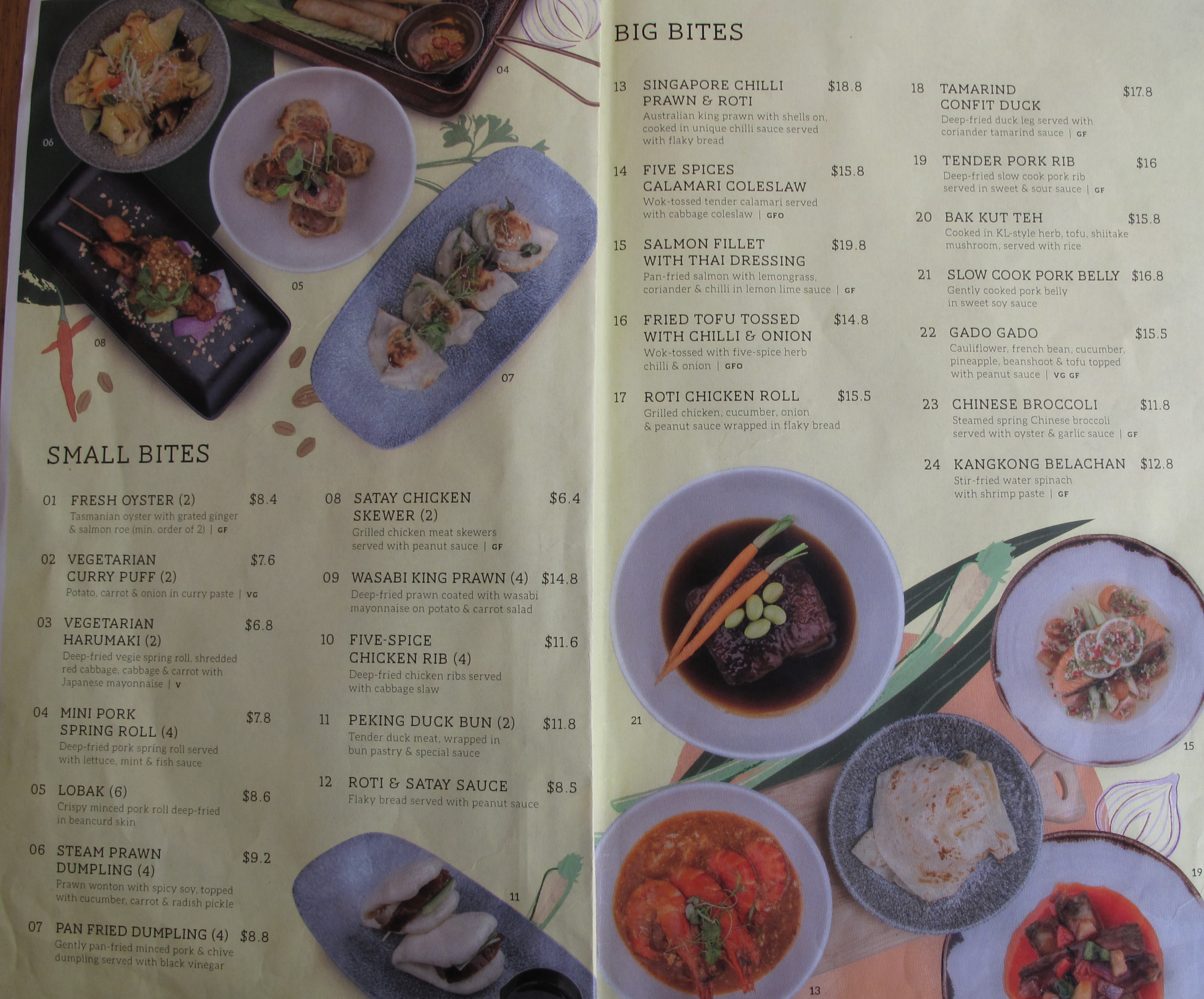The menu (see below) is a solid gathering of Malaysian staples divided into small/big bites, noodles, rice dishes, laksas and vegetarian.
