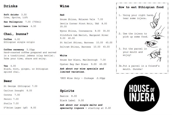 House of Injera, 227 Barkly Street, Footscray. Phone: 9687 8644