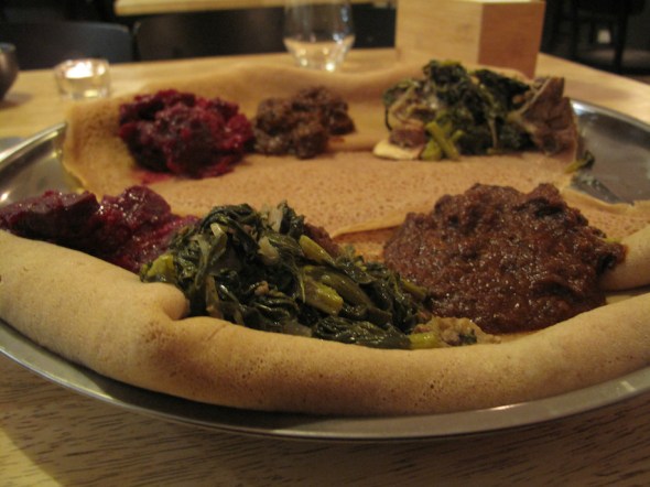 One is the inclusion of kikel seg, the meat and vegetable soup we adore, but see available at very few Ethiopian eateries.