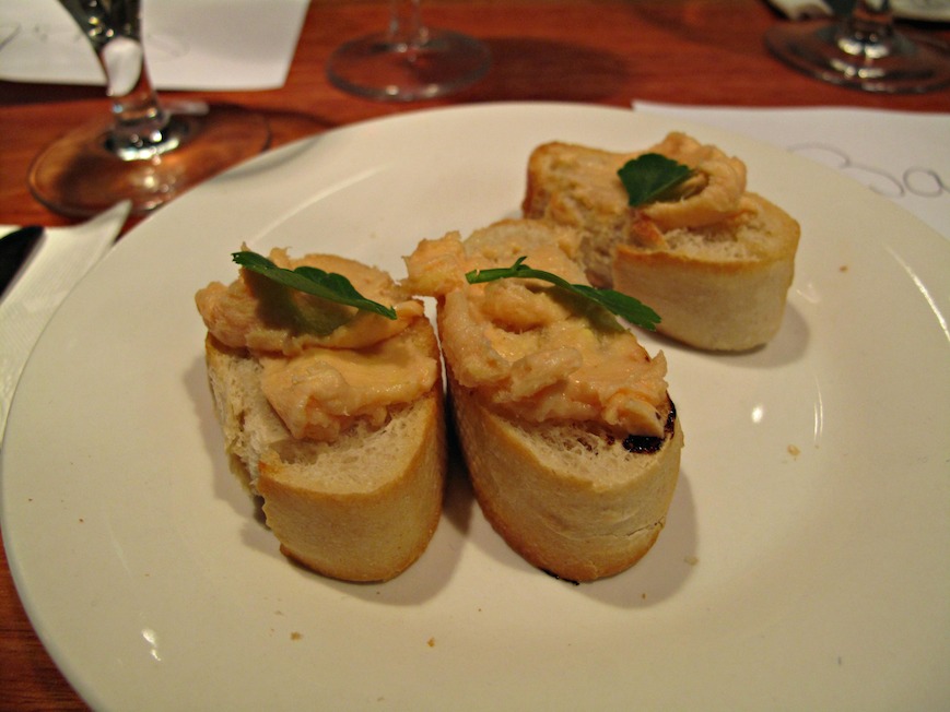 To start we are served a glass apiece of kir royal and amuse bouche of salmon mousse slathered on baguette and …