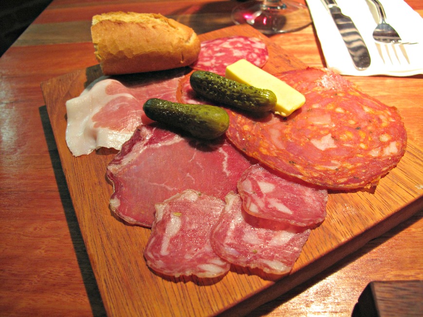 Being in a charcuterie, I do the smart thing and order the piggy platter of the same name.