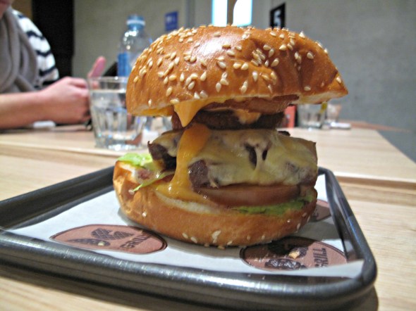 But he finds the chicken coating to be more of the soft kind found on battered fish, his final verdict being that his burger the kind of thing he’d expect to get at his now former high school.